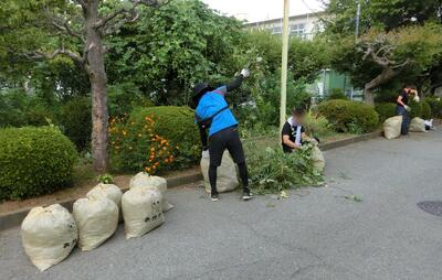 校地内の草も伸びに伸びて、しかも広範囲に広がってしまいました。