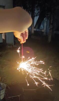 雨は止みませんが、宿泊施設の方の御配慮で、雨の当たらない所で花火をすることができました。