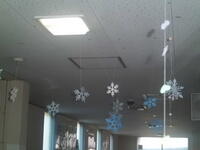 今、わかば学級の生徒たちが折り紙で作ったサンタクロースやトナカイ、雪の結晶などが廊下に飾られています。季節を感じる素敵な飾りつけです。