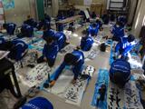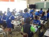 国語の時間に、すべての学年が書きぞめの練習をしています。