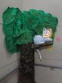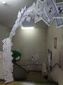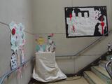 職員室前の階段が美術部によって、不思議の国のアリスの世界に装飾されています。