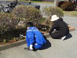 多くの方々のほか生徒の参加もあり、花植え班と防草シート班に分かれて作業を行いました。