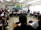 「総合的な学習の時間」なぜ行うのか…という教員の問いに、生徒たちがグループで考え、様々に意見を交わしていました。